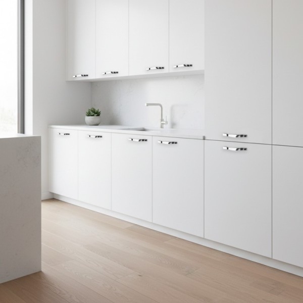 Maniglia cromata Zafir da 224 mm, elegante e resistente. Ideale per cassetti e ante moderne. Design raffinato per mobili di qualità.