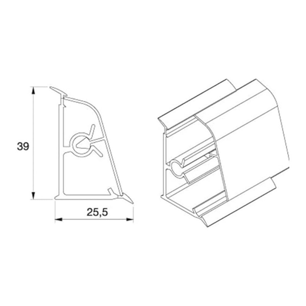 Angolare esterno in alluminio per alzatine da cucina da 25 mm, ideale per rifinire e proteggere gli angoli, garantendo estetica e durata nel tempo. Montaggio semplice.