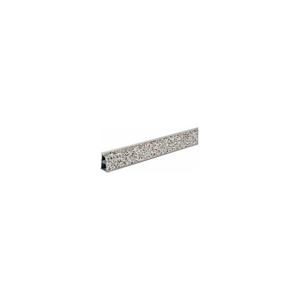 Alzatina concava 3x3 cm, lunga 3 metri, in plastica con rivestimento in alluminio. Perfetta per rifinire piani cucina o pareti con eleganza e durata.