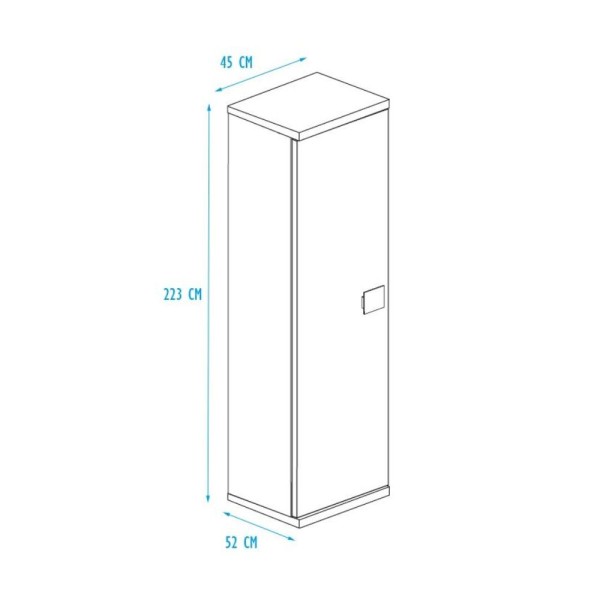 Armadio salvaspazio con 1 anta e ripiano interno. Finitura bianco frassinato elegante, struttura compatta 45x60x180H cm, ideale per camere, ripostigli o ambienti piccoli.