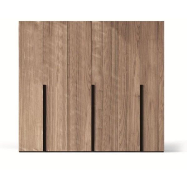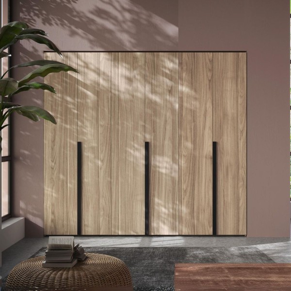 Armadio in finitura noce naturale con tre ante e due cassetti. Design pratico e raffinato, ideale per camere da letto moderne e classiche. Dimensioni: 135x52x210h cm.