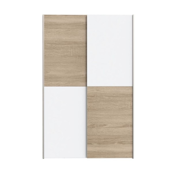 Armadio a 2 ante scorrevoli colore rovere e bianco.
