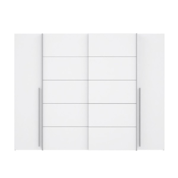 Armadio spazioso e funzionale con 4 ante e 2 cassetti, dal design elegante e moderno in colore bianco. Dimensioni 160x177H cm.