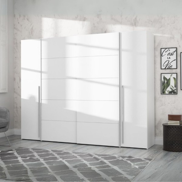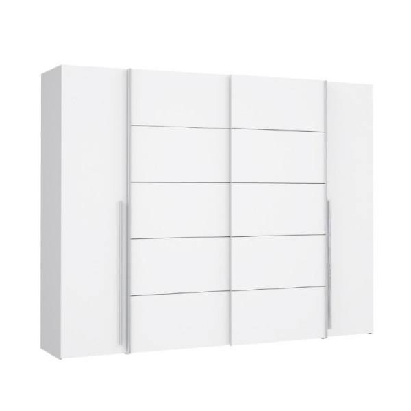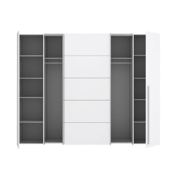 Caratteristica distintiva è l'innovativo sistema misto di apertura: la praticità delle 2 ante scorrevoli centrali, ideali per ottimizzare lo spazio negli ambienti più stretti, si sposa con la classicità delle 2 ante battenti laterali, offrendo un accesso totale e immediato ai tuoi capi.