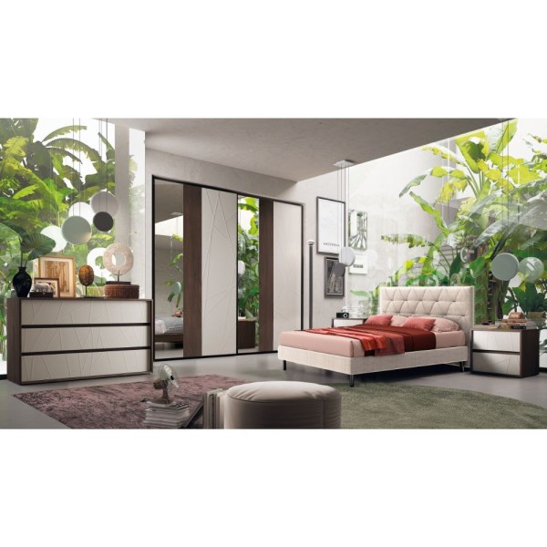 Camera da letto completa in colore canapa con armadio spazioso e ante scorrevoli, dal design moderno e raffinato - Liana.