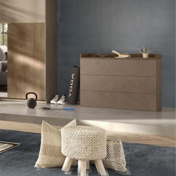 Camera da letto Batila completa, finitura cashmere. Composta da letto, armadio, comodini e comò, unisce stile contemporaneo, funzionalità e calore per un ambiente accogliente e raffinato.