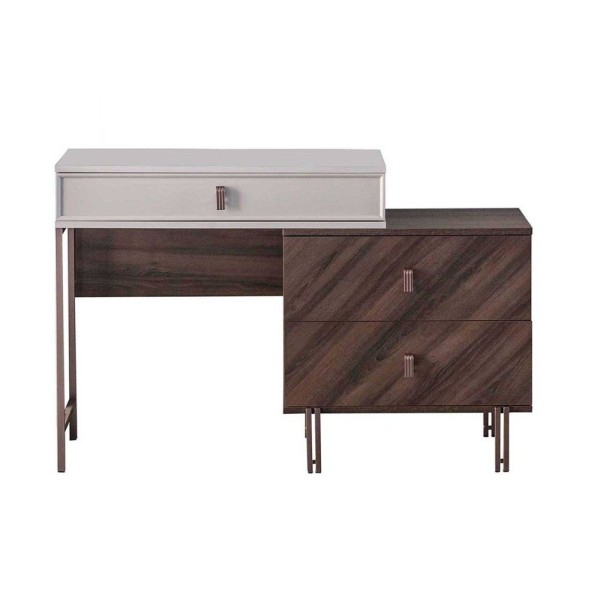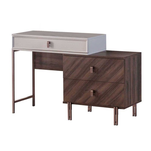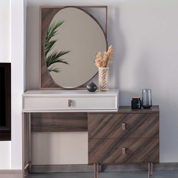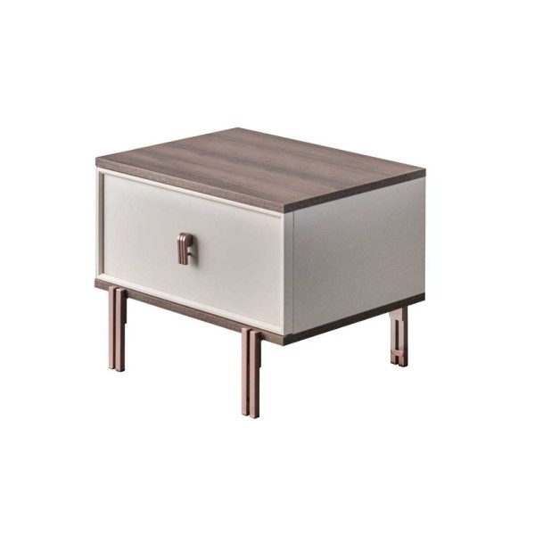 Camera da letto elegante e funzionale, con letto contenitore e finiture color bronzo mercure. Il design moderno e raffinato si adatta a ogni ambiente.