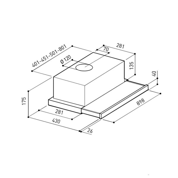 Il gruppo cappa sottopensile Samet Kripto90 è elegante e funzionale, con un design moderno e sofisticato in colore nero.