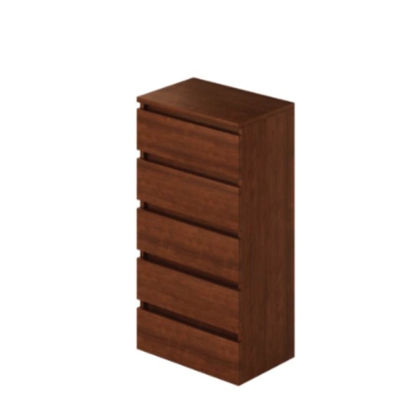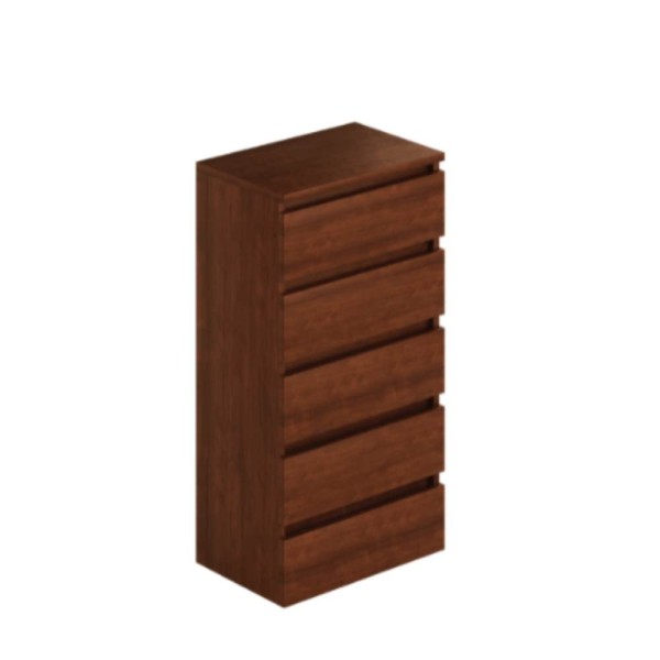 Cassettiera in stile classico con 5 ampi cassetti, finitura noce antico. Struttura robusta, già montata, ideale per camera o soggiorno. Dimensioni 47x127H cm.
