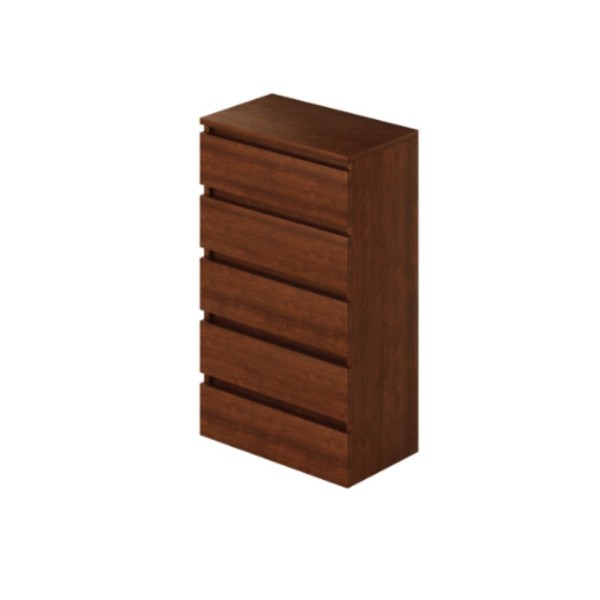 Cassettiera montata con 5 ampi cassetti, finitura noce naturale. Elegante, robusta e salvaspazio, ideale per camera da letto o ingresso. Misure: 47x127H cm.