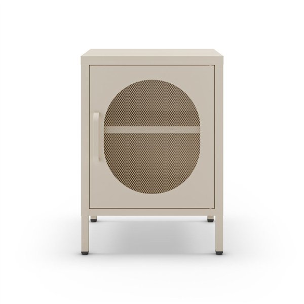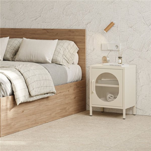 Comodino in metallo con anta reticolta.