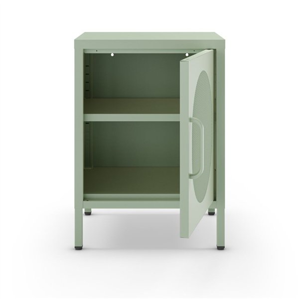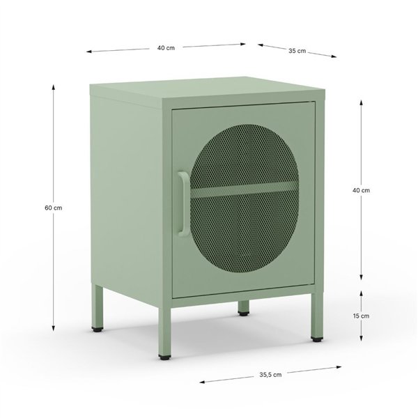 Comodino in metallo con anta reticolata colore verde menta Diora