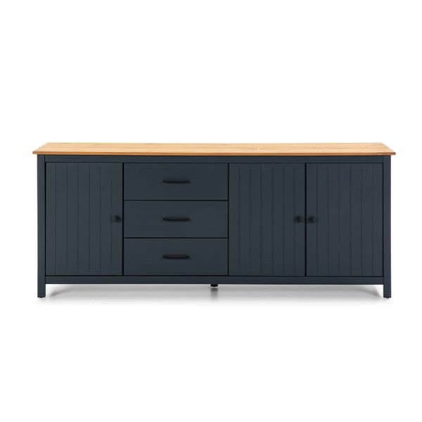 Credenza in legno massiccio colore blu e pino 191x40x80H Miranda
