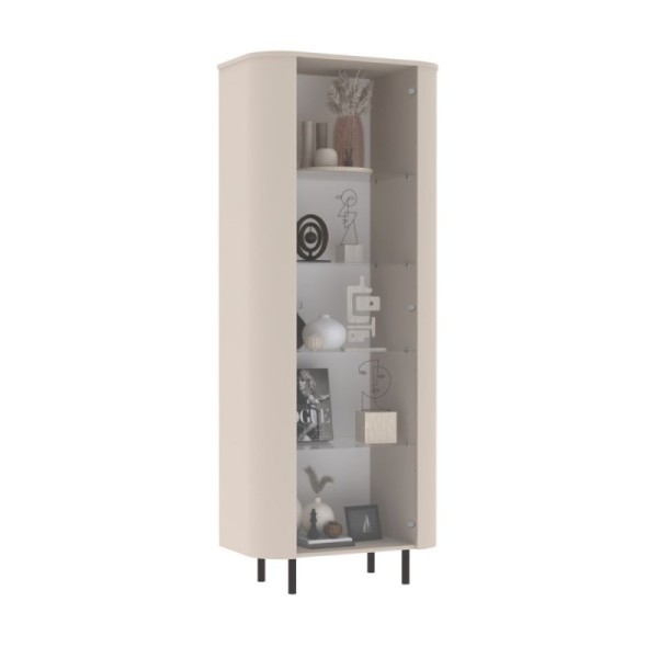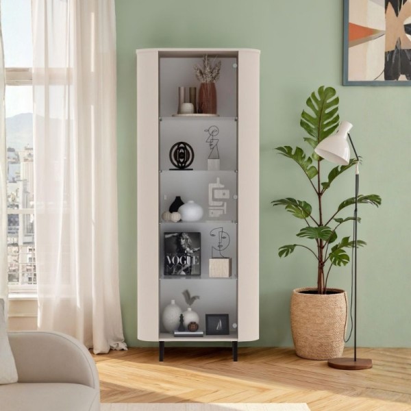 La struttura è realizzata nella tonalità cashmere, neutra e calda, per un’estetica più sofisticata e accogliente. Il contrasto tra la solidità della struttura e la leggerezza dell'anta in vetro permette di arredare senza appesantire visivamente lo spazio.
