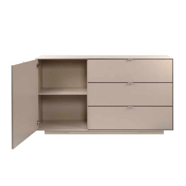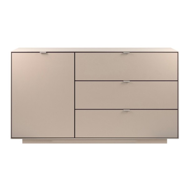 Madia moderna con finitura cashmere, dotata di ante spaziose e piedi neri in metallo. Design elegante e funzionale, perfetto per arredare soggiorni contemporanei con stile.