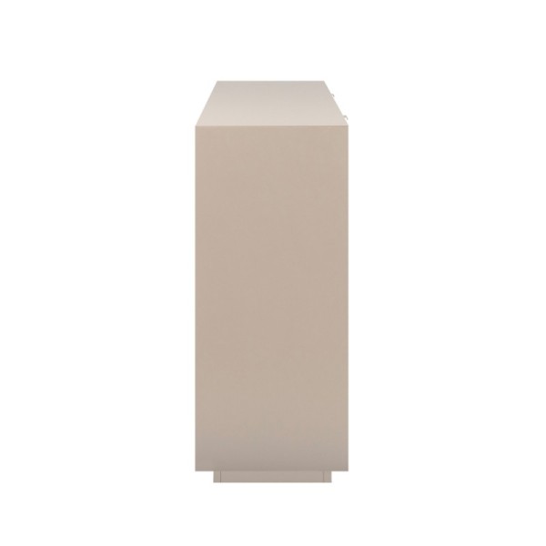 Madia moderna con quattro ante, finitura cashmere e rovere. Elegante e funzionale, perfetta per soggiorni contemporanei. Ampio spazio contenitivo per ogni esigenza d’arredo.