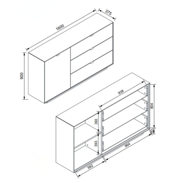 Madia moderna e funzionale con ante e ripiani, dal design elegante e contemporaneo, perfetta per arredare il tuo soggiorno o la tua sala da pranzo.