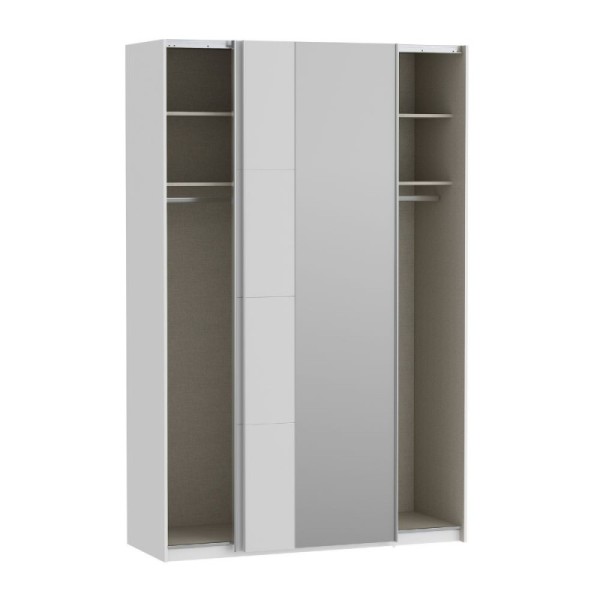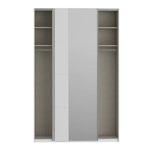 Grazie a 4 ripiani e 2 aste appendiabiti, l'interno dell'armadio è configurato per mantenere il tuo guardaroba sempre in ordine.