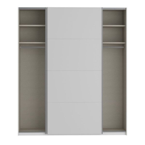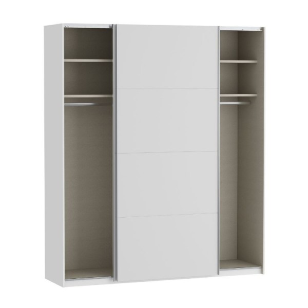 Grazie a 4 ripiani e 2 aste appendiabiti, l'interno dell'armadio è configurato per mantenere il tuo guardaroba sempre in ordine.