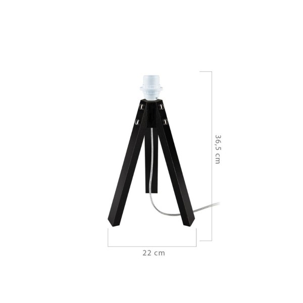 Lampada da tavolo elegante e moderna con base a treppiede in legno nero, perfetta per illuminare e arredare con stile ogni ambiente.