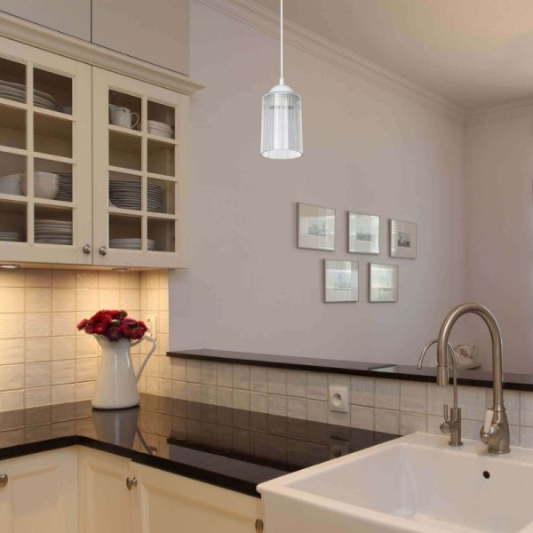 Lampada da soffitto moderna con paralume cilindrico in plastica trasparente, perfetta per illuminare con stile qualsiasi ambiente della casa.