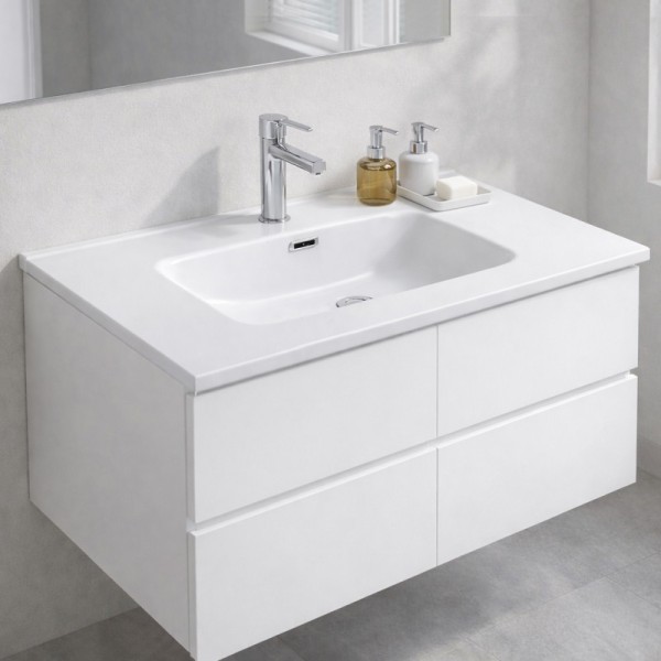 Piano per lavabo rettangolare bianco Keba 100x47 cm. Elegante e resistente, perfetto per bagni moderni. Superficie liscia, facile da pulire, ideale per ogni ambiente.