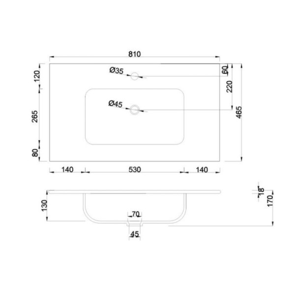 Piano per lavabo rettangolare Keba, colore bianco, misura 80x48 cm. Design moderno e funzionale, ideale per bagni contemporanei. Superficie resistente e facile da pulire.