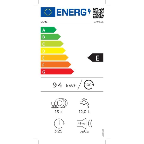 La lavastoviglie a incasso Samet SAMLVS è un'eccellente scelta per la tua cucina. Con classe energetica E e capacità di 13 coperti, garantisce prestazioni ottimali e un design elegante in colore silver.
