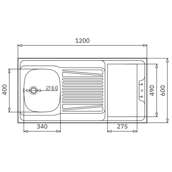 Lavello da appoggio in acciaio inox 80x60 cm con una vasca e gocciolatoio sinistro. Pratico, resistente e adatto a ogni tipo di cucina.