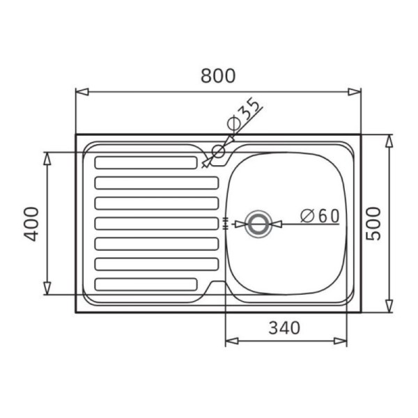 Lavello a una vasca e gocciolatoio destro 80x50...