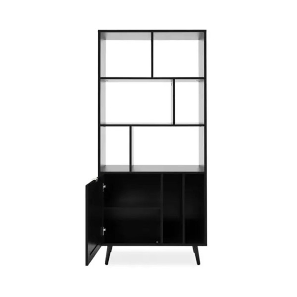 Libreria elegante e funzionale con vani aperti e anta chiusa, dal design moderno e raffinato, perfetta per arredare con stile.