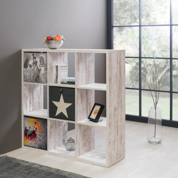 Libreria divisorio 107x107H cm a 9 cubi colore bianco consumato - Max9