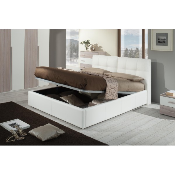 Letto matrimoniale con contenitore e testiera colore bianco - Melia