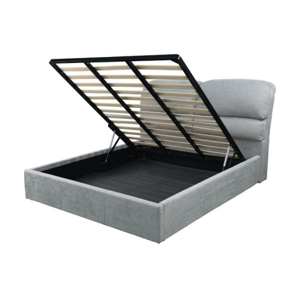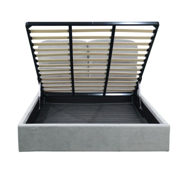 Letto una piazza e mezza con contenitore in tessuto grigio, elegante e funzionale, perfetto per ottimizzare lo spazio nella tua camera da letto a Napoli.