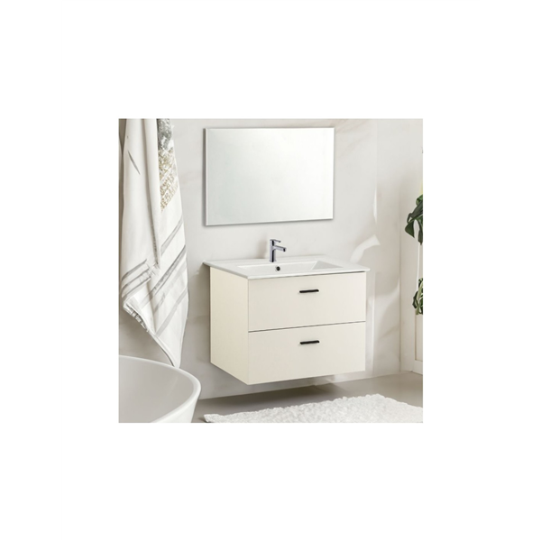 Elegante mobile sospeso da bagno 81 cm con lavabo integrato e specchio. Finitura argilla moderna, ideale per arredare con stile e funzionalità qualsiasi ambiente bagno.