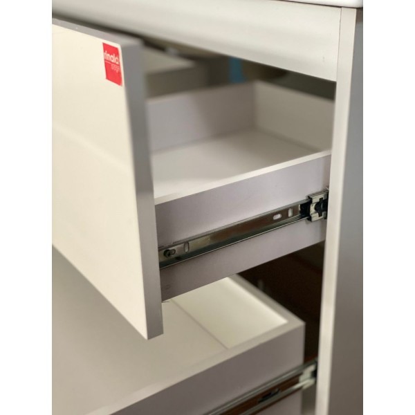Mobile bagno sospeso bianco opaco 80 cm con due cassetti effetto cannettato. Design moderno e pratico, ideale per arredi eleganti e funzionali in ambienti bagno contemporanei.