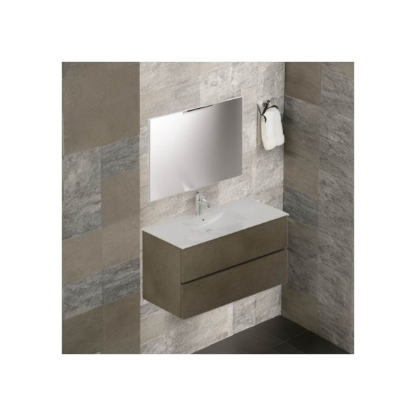 Mobile bagno sospeso 101 cm con lavabo e specchio inclusi. Finitura argilla moderna, design elegante e funzionale per arredare il bagno con stile e praticità.