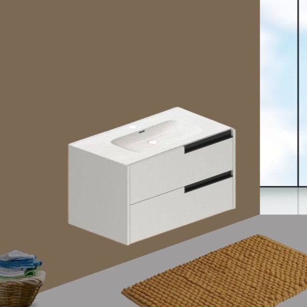 Mobile bagno sospeso bianco opaco 80 cm con due cassetti effetto cannettato. Design moderno e pratico, ideale per arredi eleganti e funzionali in ambienti bagno contemporanei.