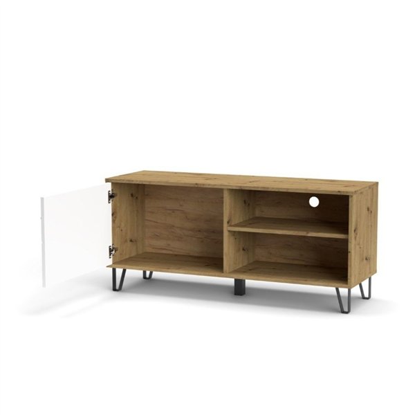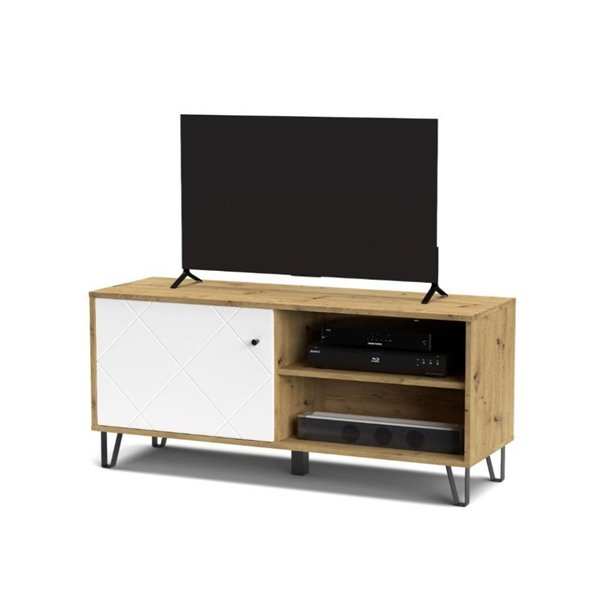 Mobile porta TV dotato di anta e vano a giorno colore rovere bianco.