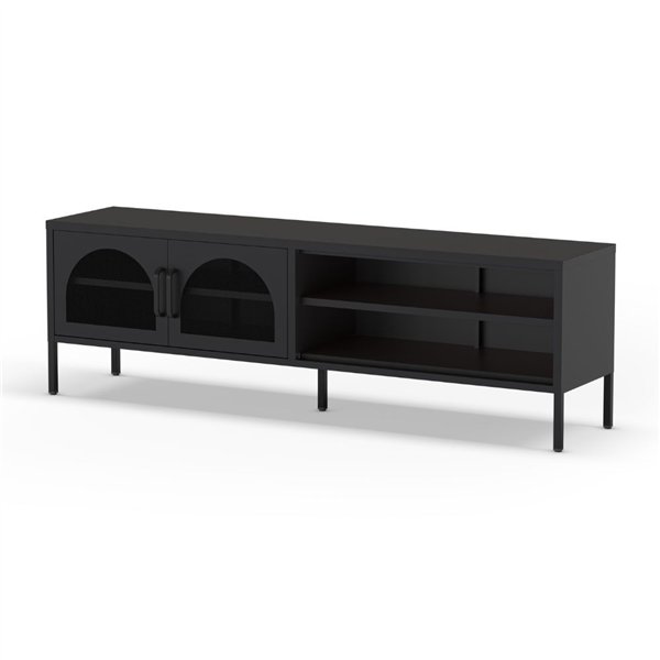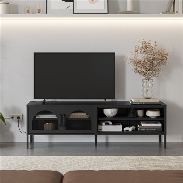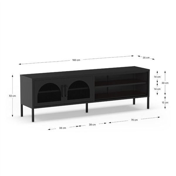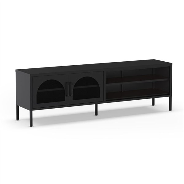 Mobile porta Tv in metallo nero con 2 ante reticolate 160x35x50H Diora