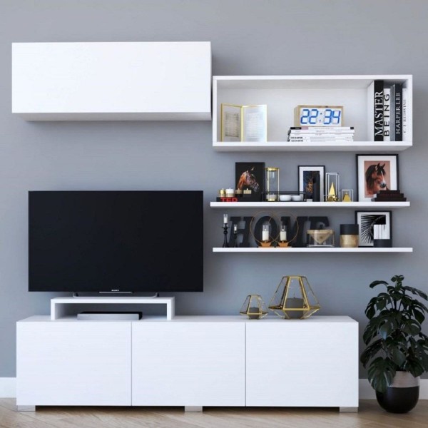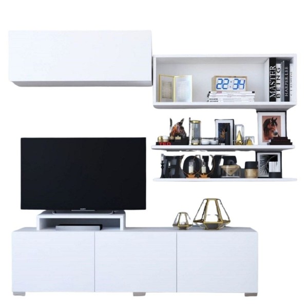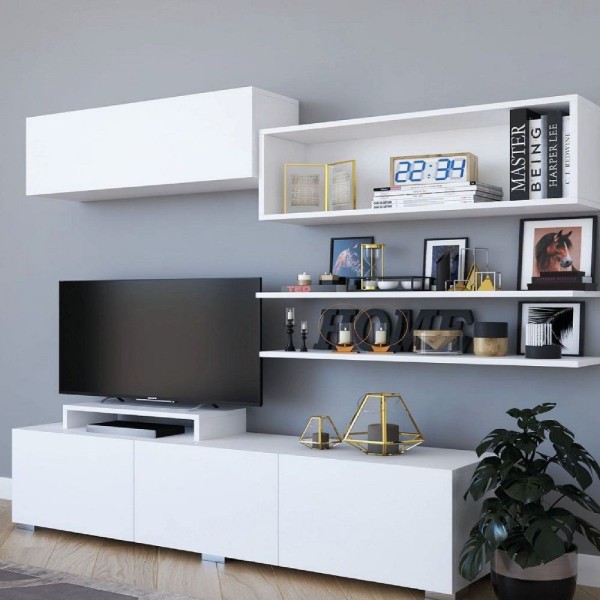 Parete attrezzata 120H cm con base e pensili colore bianco - Dekor