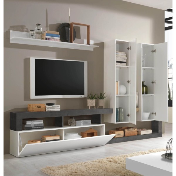 La parete attrezzata Mogol, con larghezza di 277 cm, unisce estetica moderna e funzionalità. Le finiture in bianco lucido e ossido creano un contrasto elegante, perfetto per ambienti contemporanei. Composta da vani chiusi, mensole a giorno e basi capienti, questa soluzione offre tutto lo spazio necessario per organizzare oggetti, libri, accessori e dispositivi multimediali. La struttura robusta e le superfici resistenti la rendono ideale per un utilizzo quotidiano. Grazie al suo design pulito e geometrico, la parete Mogol si adatta facilmente a diversi stili di arredo, valorizzando l’ambiente con gusto. Facile da montare, è la scelta perfetta per il tuo soggiorno.