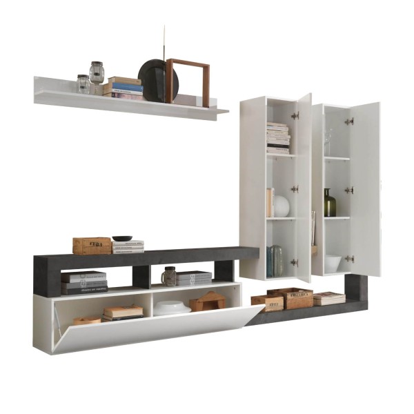 Parete attrezzata colore bianco lucido e ossido 277 cm - Mogol