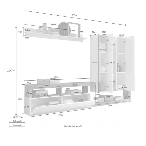 - L / P / H: 78/27/41 (27) cm vano a giorno accanto alla ribalta