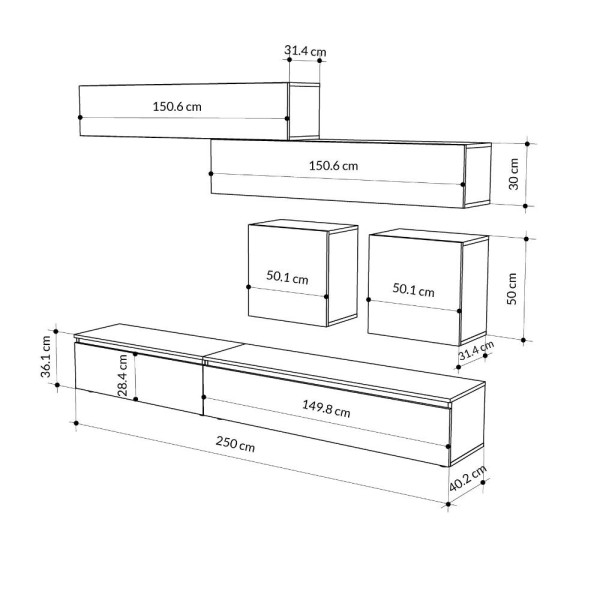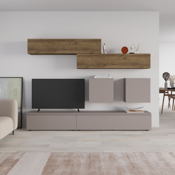La parete attrezzata colore tortora e noce 250x186H cm - Licia di Toscohome è l'ideale per arredare con stile e funzionalità il tuo soggiorno. Realizzata con materiali di alta qualità, questa parete attrezzata offre ampio spazio per riporre libri, oggetti decorativi e dispositivi multimediali. Il design moderno e raffinato si adatta perfettamente a qualsiasi tipo di arredamento, aggiungendo un tocco di eleganza alla tua casa. Grazie alle sue dimensioni generose, questa parete attrezzata è perfetta per chi desidera un mobile capiente e ben organizzato. Acquista subito la parete attrezzata Licia su Toscohome e trasforma il tuo soggiorno in un ambiente accogliente e di classe.