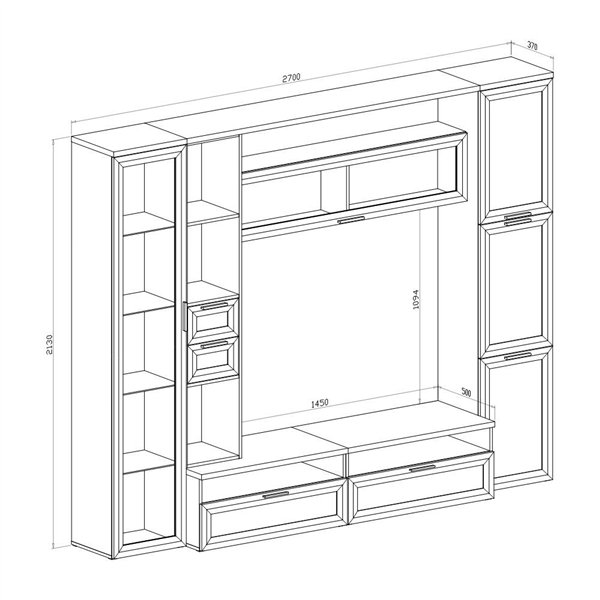 La parete attrezzata Kadiz è un elegante e funzionale complemento d'arredo, con un design moderno e raffinato, perfetto per organizzare e decorare il tuo spazio living.