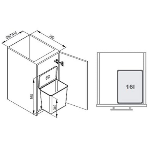 Pattumiera estraibile Aladin1 con un secchio da 16 litri. Compatta, pratica e perfetta per la gestione dei rifiuti in cucine con poco spazio.
