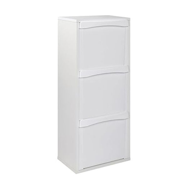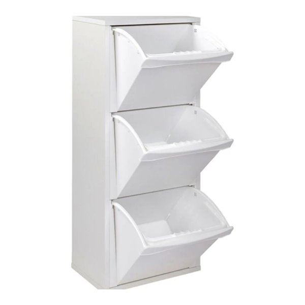 Mobile pattumiera salvaspazio con 3 secchi estraibili. Pratico per la raccolta differenziata, ideale in cucina o lavanderia. Colore bianco, misura 40x25x102H cm.