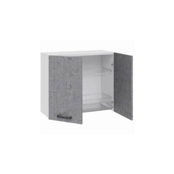 Pensile scolapiatti da cucina 80 cm con due ante finitura cemento. Pratico e moderno, include scolapiatti interno in metallo ed è perfetto per ambienti dal design contemporaneo.