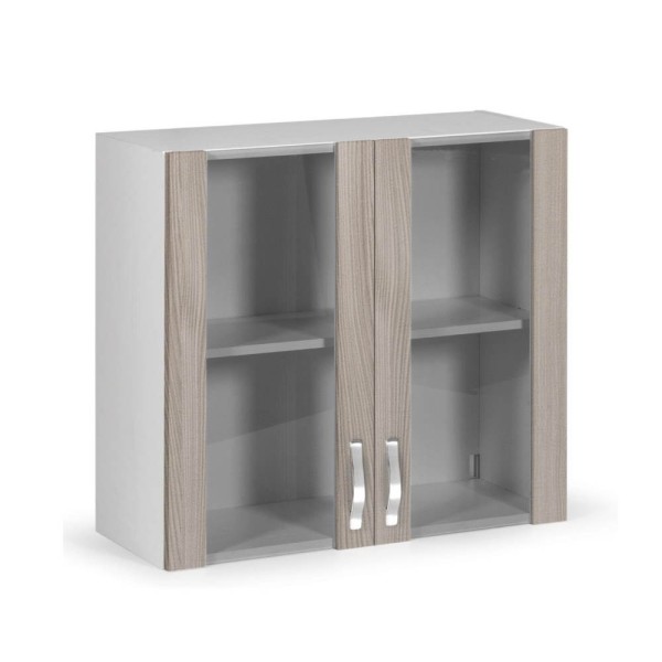 Pensile vetrina cucina con due ante in vetro, finitura olmo. Misura 80x72H cm, perfetto per aggiungere eleganza e spazio contenitivo alla tua cucina moderna o classica.